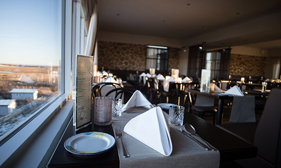 The family that owns Hotel Laki takes pride in building relationships with local farmers and using only the best ingredients; the quality shines through with every bite. The menu features fish, meat, scrumptious burgers, and more. The expansive skyline makes for great views of the summer sun and winter’s Northern Lights. Open daily from 7 to 9 p.m.