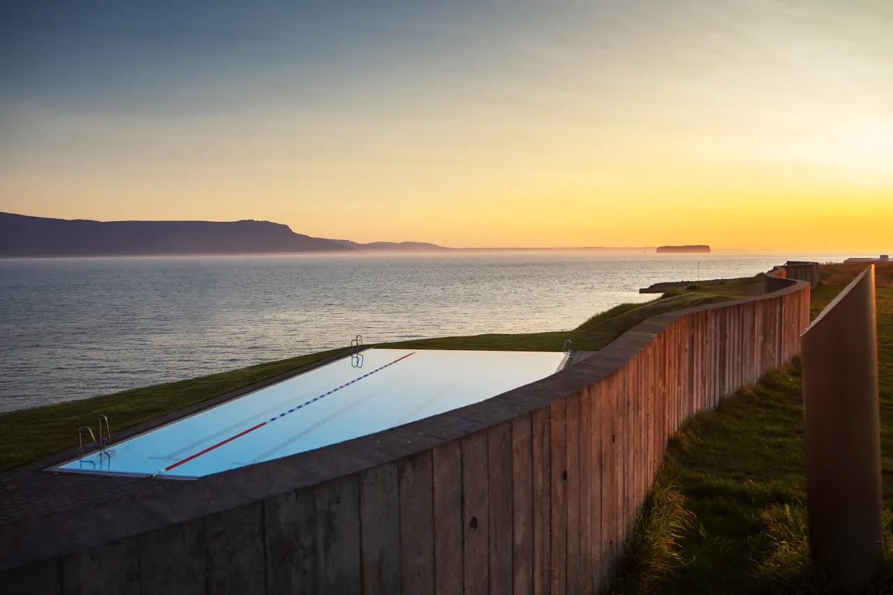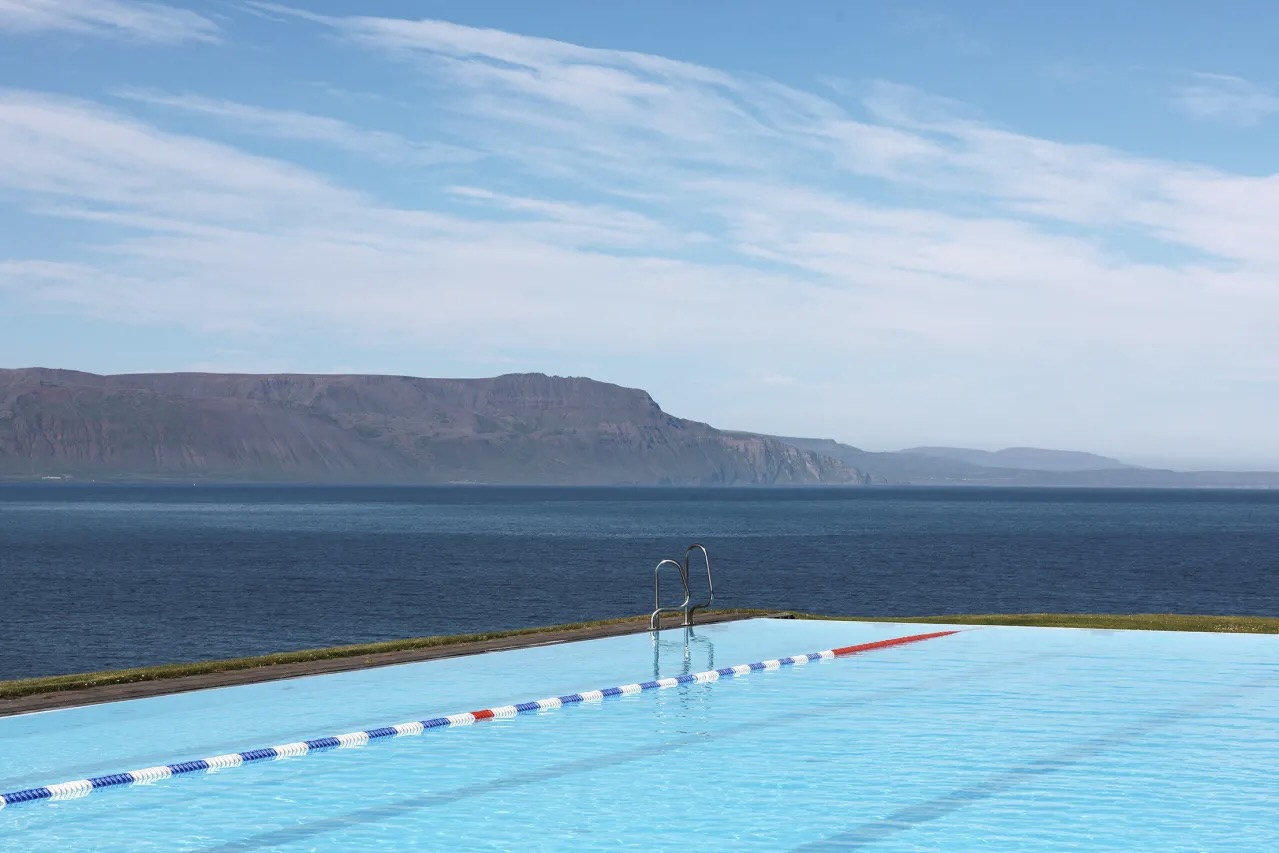 A modern outdoor swimming pool situated in the town of Hofsós, one of the oldest trading posts in northern Iceland. The pool is set by the seaside with breath-taking views over Skagafjörður’s natural treasures. You almost feel at world’s end when gazing over the pool’s edge. Superb facilities and hot tubs where you can relax and enjoy the view.